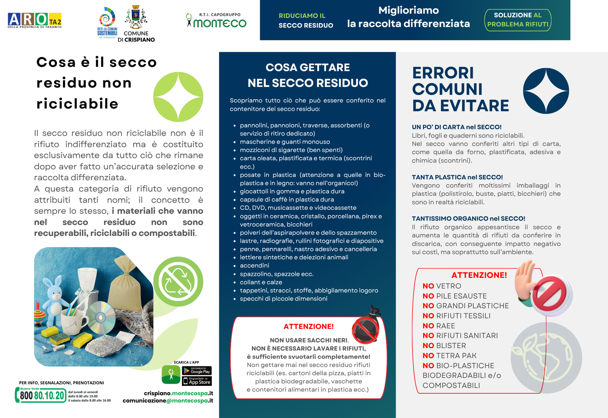 Prossimamente distribuzione door to door del volantino del secco residuo non riciclabile